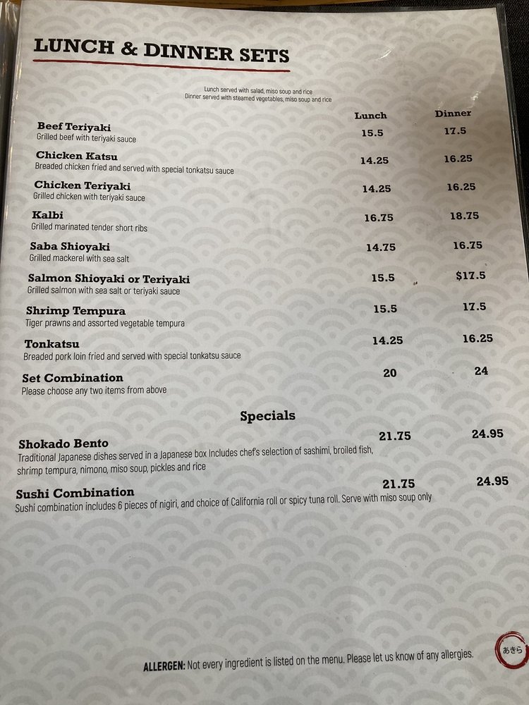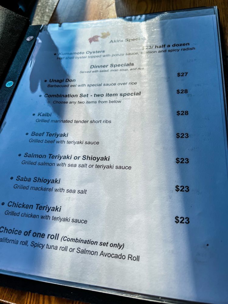 Akira Japanese Restaurant San Francisco Menu (Update 2025)